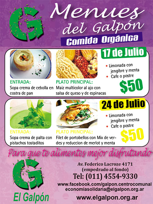 Veni en Julio y disfrutá de los menues del Galpón. Te esperamos con toda la familia.