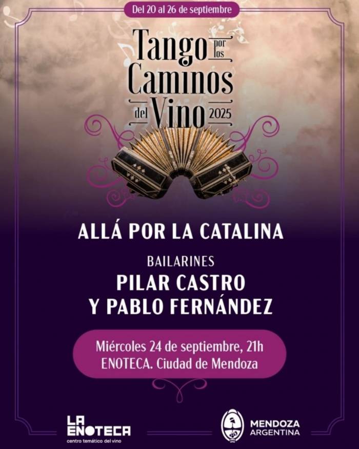 El evento une tango argentino y cultura vitivinícola con entrada libre hasta completar aforo este miércoles a las 21 horas